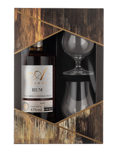 Agárdi Rum díszdoboz 2 db Single Malt pohárral 43%, 0,5 L